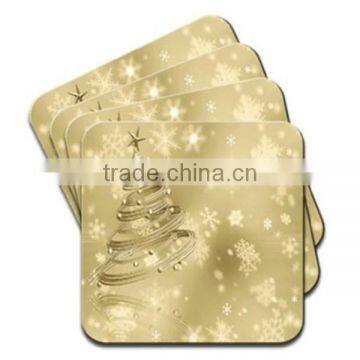 2017 Natural Wood Gold Swirled Christmas Tree With Star & Baubles Snowflakes Falling Coaster Made in China