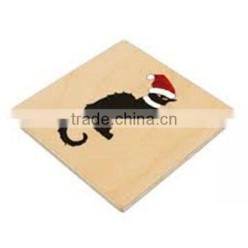 2017 Natural Wood Coaster With a Cat in Chistmas Hat for Christmas Decoration Made in China