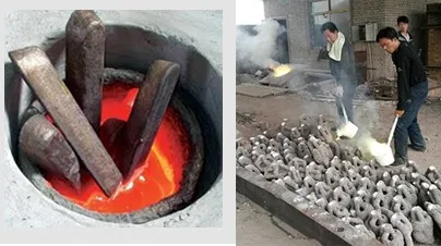 Casting the bronze, Bronze material will melted in a crucible furnace until they transform into a molten liquid, then we will hand-pour molten bronze into this hollow sand shell under temperature of about 2000 F.