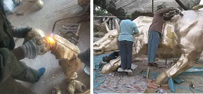 When the bronze is cooled, we will remove the sand shell, reunite all parts of this sculpture and start to weld all together..Polishing the surface and ready to make patina..