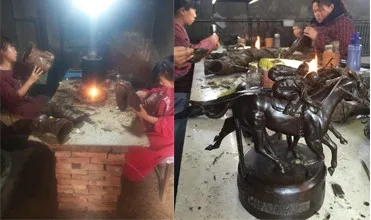 The patina process is result of chemical and heat applied time after time, until the customs are satisfied with the finally patina, finally wax it to protect the sculpture.