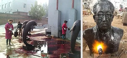 The patina process is result of chemical and heat applied time after time, until the customs are satisfied with the finally patina, finally wax it to protect the sculpture.