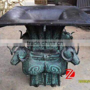 Antique Chinese Cast Square Bronze Ding With Sheep Statue