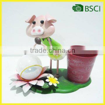 YS15120 Metal Led Light Pig Planter Solar Led Flower Pot Light