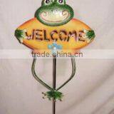YS88302 Frog With Welcome Sign Metal Art Stick Made in Fujian With Size 12*1.75*39.75"