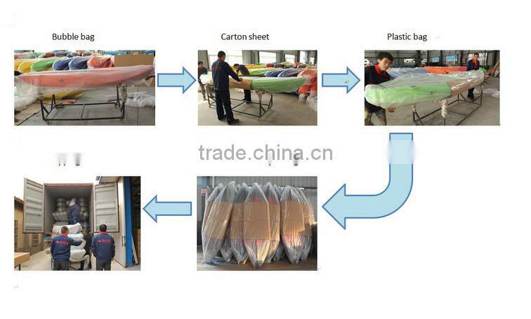All kayaks from our factory are packed well by three layers.One layer is bubble bag, the middle layer is carton sheet, and the top layer is plastic bag.