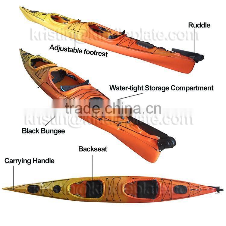 This is double seats sit in touring kayak including all accessories for all your kayaking needs from surfing the waves in the sea or rivers.