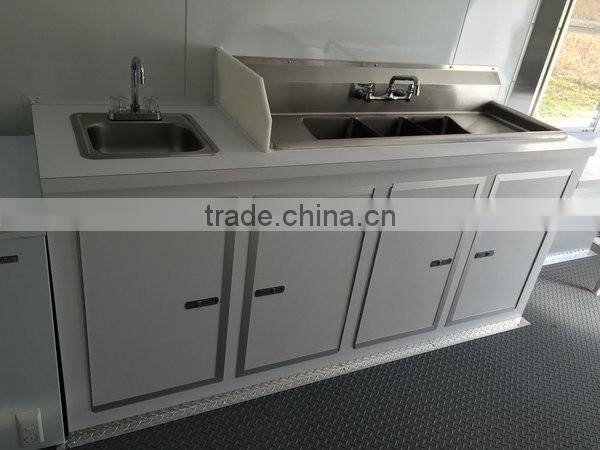 Using 304 stainless steel for kitchen, everything inside the food trailer can be customizable, Ice-cream trailer, BBQ trailer, snack trailer, hot dog trailer, hamburger trailer, porcorn trailer....etc,whatever food trailer you would like us to make it, we do it for you, only meet your demand and requirment.