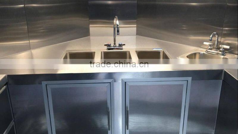 Using 304 stainless steel for kitchen, everything inside the food trailer can be customizable, Ice-cream trailer, BBQ trailer, snack trailer, hot dog trailer, hamburger trailer, porcorn trailer....etc,whatever food trailer you would like us to make it, we do it for you, only meet your demand and requirment.