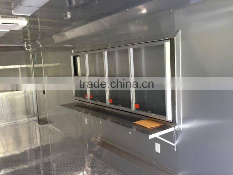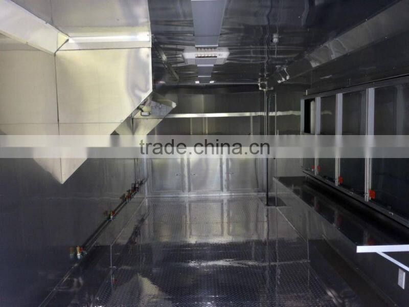 Using 304 stainless steel for kitchen, everything inside the food trailer can be customizable, Ice-cream trailer, BBQ trailer, snack trailer, hot dog trailer, hamburger trailer, porcorn trailer....etc,whatever food trailer you would like us to make it, we do it for you, only meet your demand and requirment.
