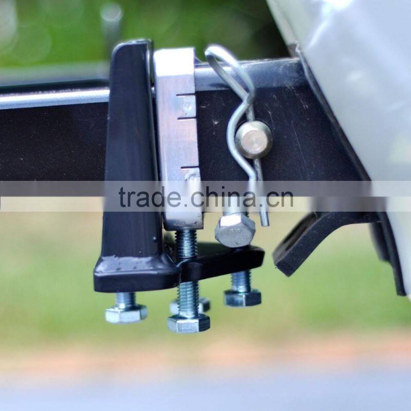 In addition, 2015 new model add two steel arms with two attachment points for tie-down straps,one for handles of your bike,the other one for rear wheels. More easier and more durable.