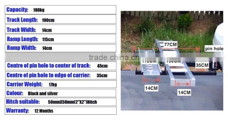 Best selling dirt bike and motorcycle carrier can be installed on Class III, IV and V 2" trailer hitch.