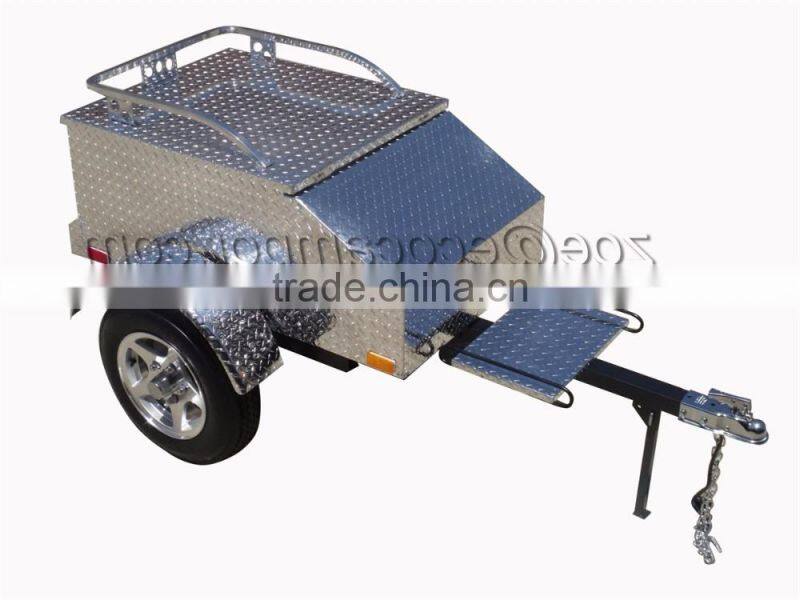 *The chassis of this Enclosed Aluminum Cargo Trailer for Motorcycle is constructed from aluminum, and the trailer is suspended with a torsion axle to keep it light weight (only 170lb)and smooth towing.