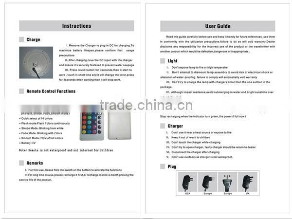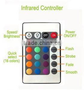 -16 colors changing ( static mode, flash mode, strobe mode, fade mode, smooth mode)