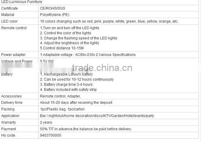 New Fashion 16 Colors Change LED Rechargeable Furniture LED Sofa/chair
