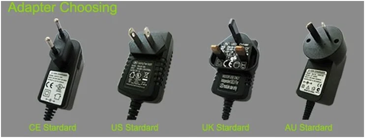 We have all kinds of plug to meet all the countries around the worlds ,like European standard, USA standard, UK standard, Australia Standard etc.,