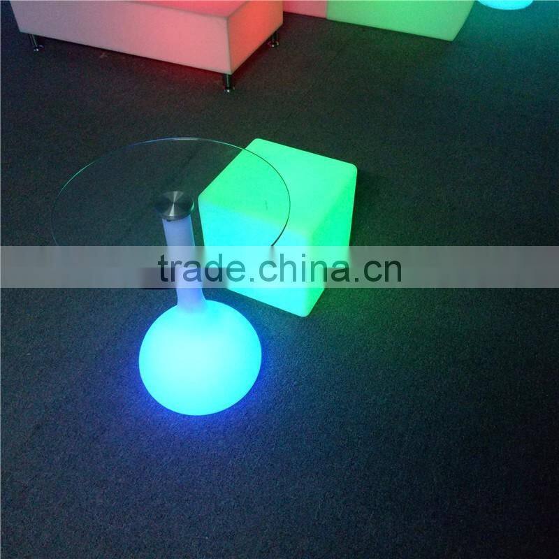 China Suplier LED Illuminated Glass Round Table and Cube Chair With Factoty Price
