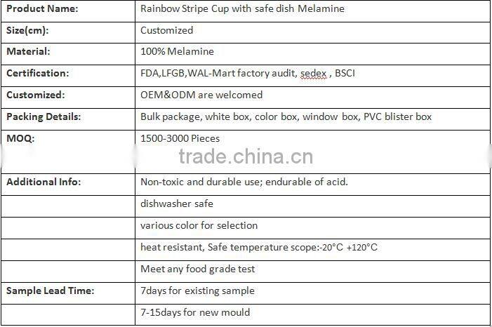 Home > Products > Melamine Cup > Rainbow Stripe Cup With Safe Dish Melamine