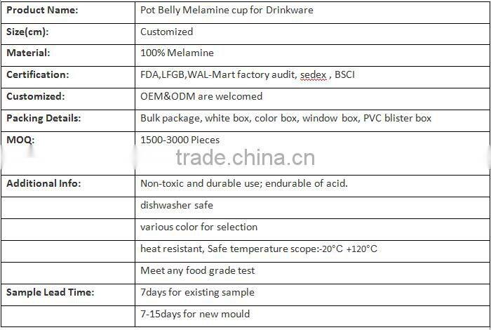 Home > Products > Melamine Cup > Pot Belly Melamine Cup for Drinkware