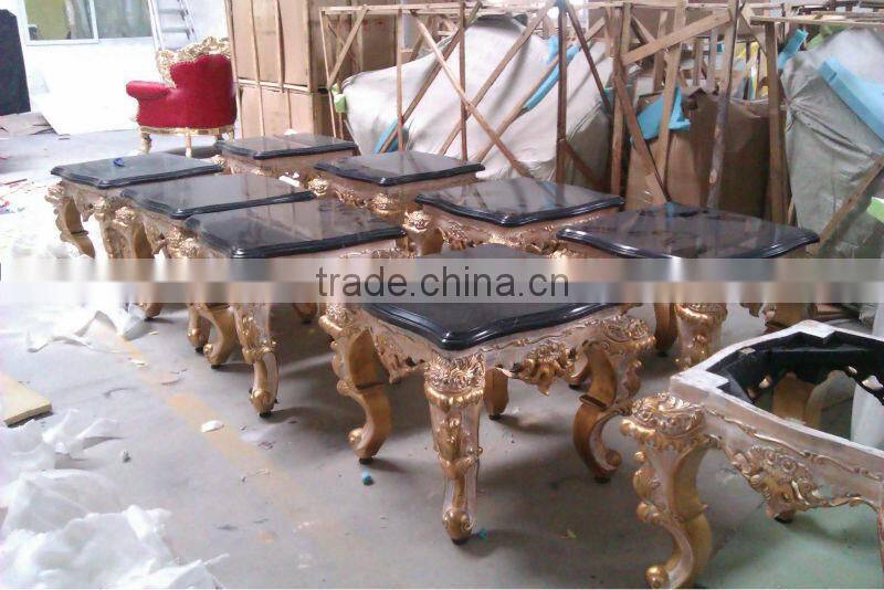 Champagne Gold Coffee Table With Marble Top, French Furniture