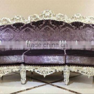 home and hotel silver leaf resin based purple fabric antique reproduction 3-seat sofa furnitureHand made sofa