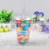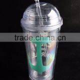 Clear Double Wall 16oz Plastic Water Tumbler With Straw