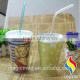 BPA Free Reusable Color Changing Double Wall Insert Plastic Tumbler