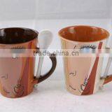 2015 Hot Sale Tea Mug With Spoon Ceramic Belly Coffee Mug With Spoon in Handle