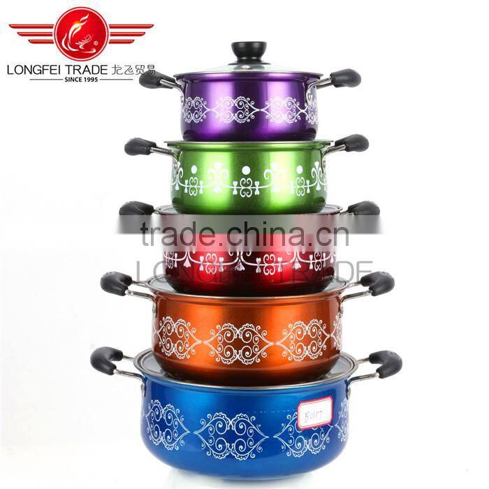 New Design 5pcs Colorized Stainless Steel Soup Pot Kitchen Cookware With Decal