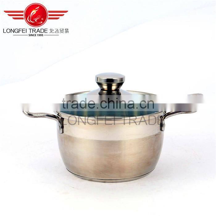 Longfei Stainless Steel Handle Hign Pot/ Stock Pot/ Soup Pot With Glass Lid