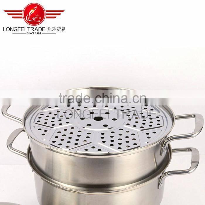 2016 new design high quality stainless steel steamer cooking pot with hollow handles and metal lid