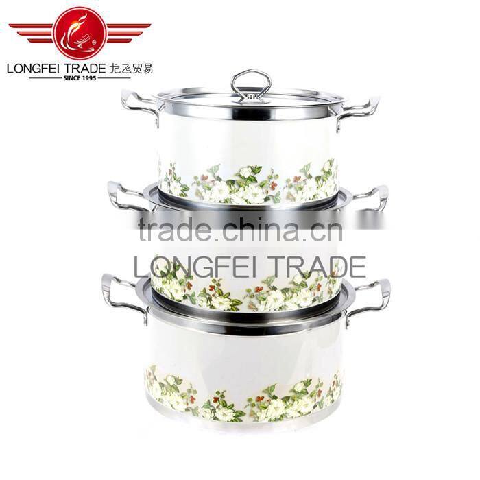 High Quality 3pcs Colorized Drum-shaped Stainless Steel Soup Pot kitchen cookware With Decal