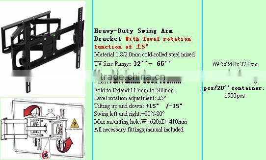 Heavy-Duty Swing Arm Bracket With level rotation function of 5 Degree