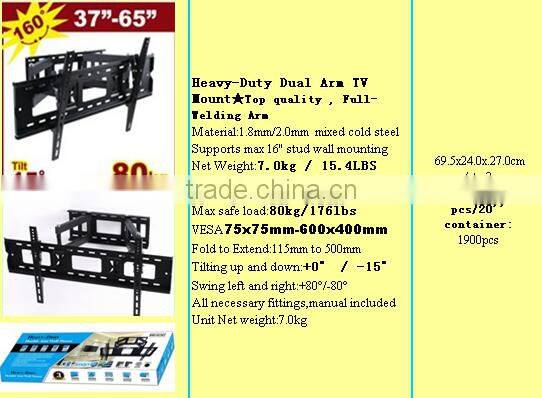 Heavy-Duty Dual Arm TV Mount & Top quality , Full-Welding Arm TV Size Range: 32''- 65''