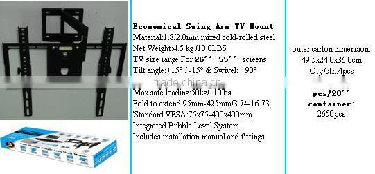 Economical Swing Arm TV Mount TV size range:For 26''-55'' screens