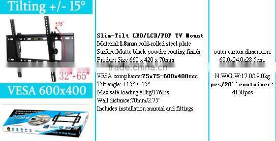 15 degree lcd led bed mount tv TV size range:For 32''-65'' dispalys