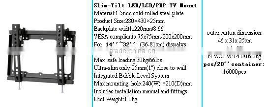 Slim-Tilt LED/LCD/PDP TV Mount For 14''~32'' (36-81cm) dispalys