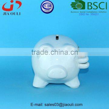 BSCI Audit Factory fashion design glazed white ceramic piggy bank, Coin Bank Adorable