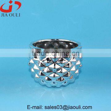 Factory price MINI pineapple shape silver plating ceramic pot, planters pots