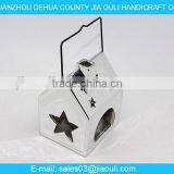 Plating Silver Ceramic House Shape Hurricane Lamp for Decoration