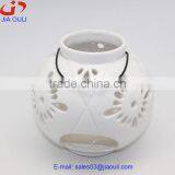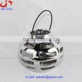 Hot Sale Hanging Plating Silver Ceramic Hollowed-out Hurricane Lamp