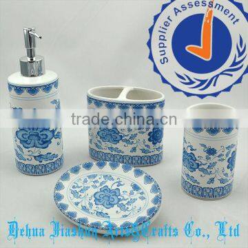 This bathroom accessories is very gorgeous , its inspiration from the French palace interior design. Simple white glaze fired at high temperatures, and then hand-painted patterns. Fashion modeling welcomed by many consumers.