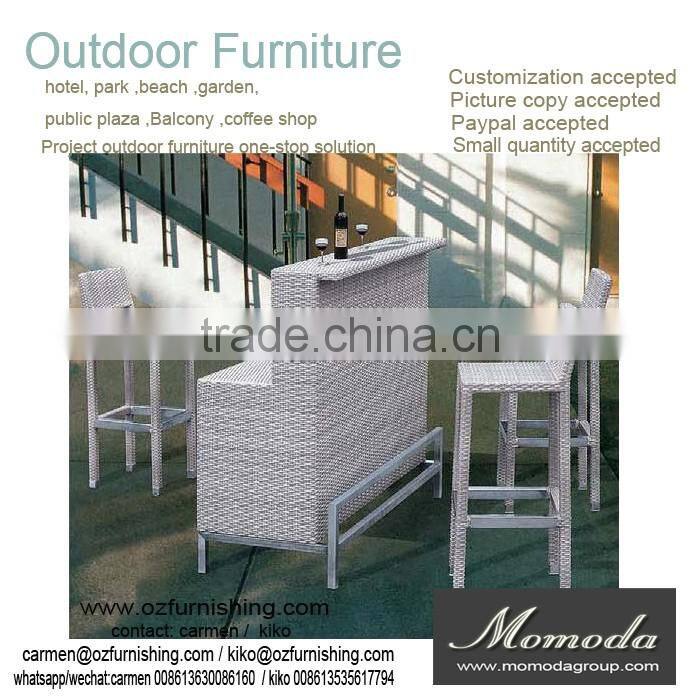 9172 Popular Outdoor Furniture Portable Rattan Bar Furniture With Bar Table and Stools