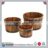 FIR WOOD APPLE BARREL PLANTER TRIO