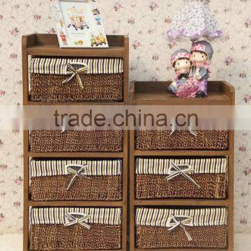 Shabby Chic Wooden Sotorage Wicker Caninet With 5 Drawers