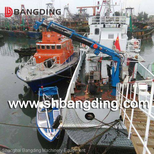 This series of 15T electric hydraulic offshore knuckle telescopic boom ship deck marine crane can be of various types of marine vessels selected for lifting goods, spare parts, food use; the overall structure of the machine is divided into the base unit, rotary devices and boom three parts. The motor direct drive pump for pressure oil passes through the hydraulic system to the executing agency to complete the cargo lift. Used for lifting, rotation and amplitude movements, all carried automatic protection device, the device and active force control system has nothing to do, if for some reason have lost power or loss of pressure, all the action will automatically stop, to ensure the hsafety of 15T electric hydraulic offshore marine knuckle telescopic boom boat crane systems and personnel.