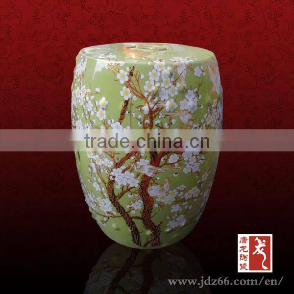China supplier light green glazed flower and birds pattern ceramic stools for dining table chair