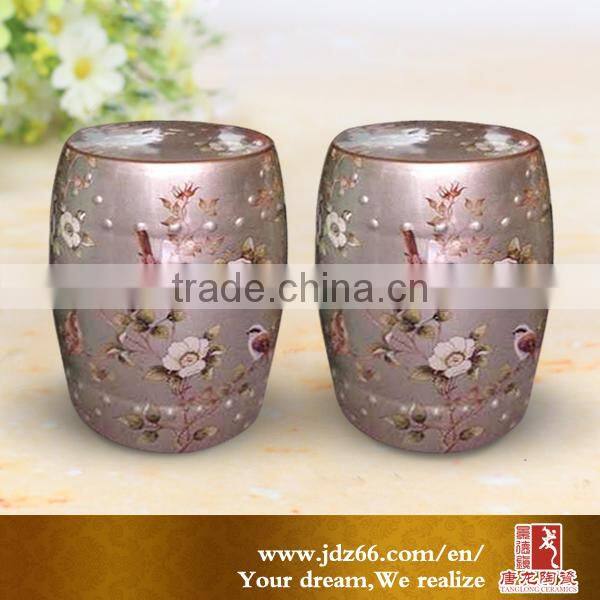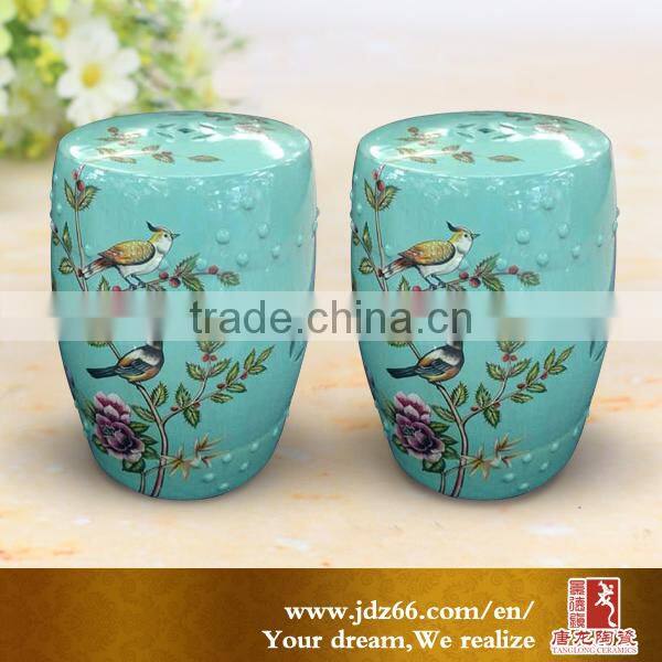 Home garden decor porcelain ceamic stool flower and bird design