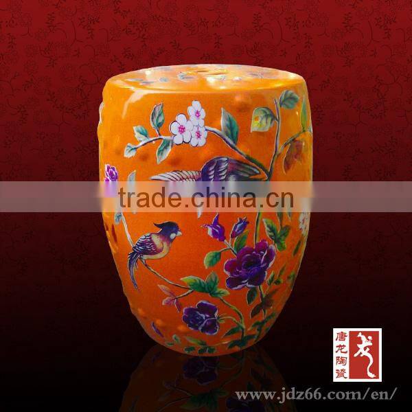 China Supplier Orange Glazed Birds Figure Ceramic Stools