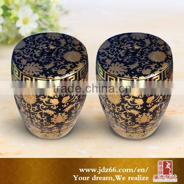 2016 jingdezhen black and gold ceramic garden stool